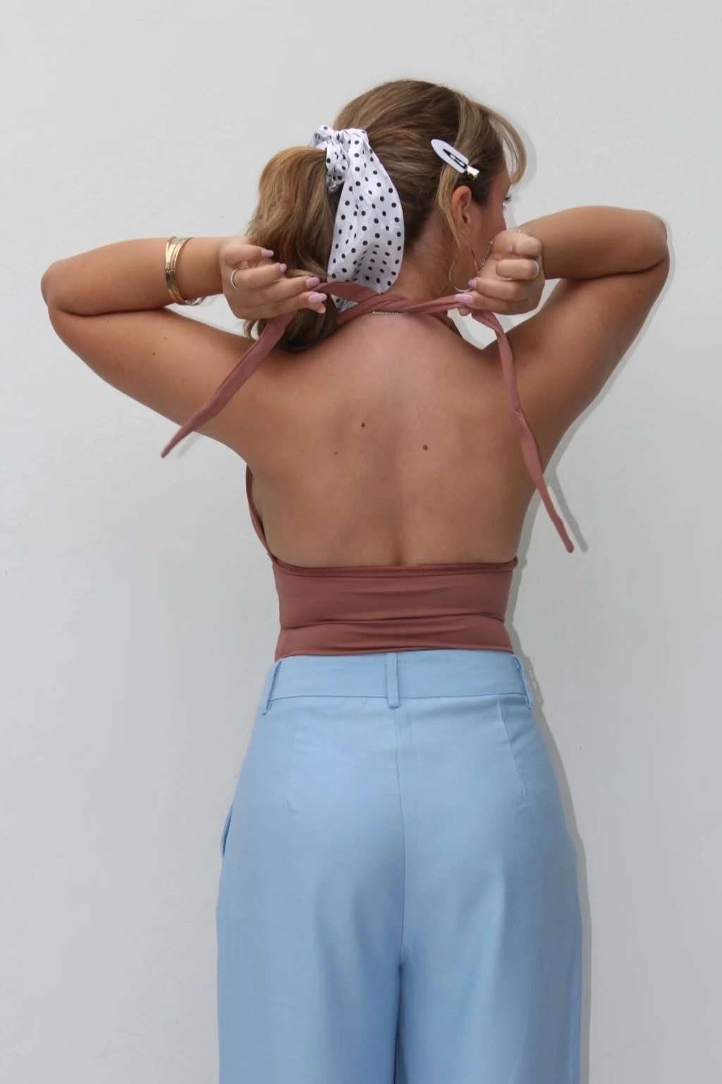 Confeccionado em poliamida de alta qualidade, ele possui decote frente única com amarração no pescoço, que valoriza o colo e garante um ajuste perfeito ao corpo.